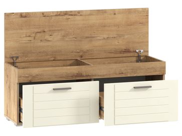 Прихожая Ливорно представляет собой два вместительных шкафа, открытую вешалку для верхней одежды и банкетку с выдвижными ящиками. Стильное сочетание текстуры натурального дерева и матовых фасадов придают комплекту изящества.<br>