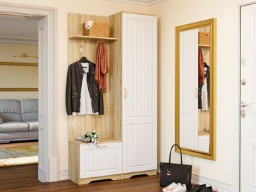 В комплект входят (ВхШхГ): <br> Шкаф-пенал: 2198 х 552 х 380 мм.<br> Обувница: 512 х 602 х 380 мм.<br> Вешалка: 1670 х 602 х 266 мм.<br> <br>