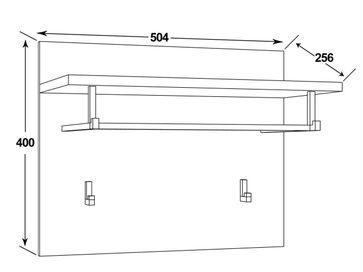 В комплект входят (ВхШхГ): <br> Настенное зеркало: 1242 х 504 х 20 мм.<br> Настенная вешалка: 400 х 504 х 256 мм.<br> Настенная вешалка: 200 х 504 х 20 мм.<br> Распашной шкаф: 1874 х 588 х 400 мм.<br> Обувница: 554 х 504 х 400 мм.<br>