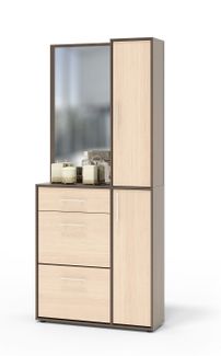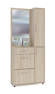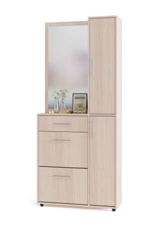 Компактный модуль для прихожей Моренго оборудован шкафчиком с полками, в котором удобно хранить необходимые под рукой мелочи. Вместительная тумба для обуви оборудована выдвижным ящиком, двумя отсеками для обуви и полками за дверцей.<br>