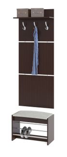 Малогабаритная прихожая Моренго — удобный вариант для небольшого помещения. Модель позволит разместить сезонную одежду всей семьи.</br> Вешалка состоит из трех панелей, соединенных металлическими вставками. Полка, закрепленная над крючками для одежды, предназначена специально для головных уборов и зонтов. Максимальная нагрузка на полку составляет 5 кг.<br>