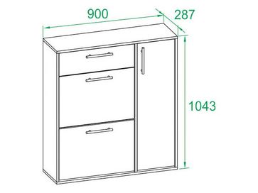 Размеры модулей: <br> настенная вешалка (ВхШхГ): 1460 х 600 х 212 мм;<br> малая обувница (ВхШхГ): 555 х 600 х 283 мм;<br> большая обувница (ВхШхГ): 1043 х 900 х 287 мм;<br> настенное зеркало со шкафом (ВхШхГ): 1044 х 900 х 287 мм.<br>