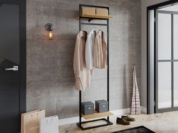 Прихожая Лофт станет компактным и функциональным дополнением интерьера в одноименном стиле. Металлическая перекладина для плечиков позволит повесить вещи, сохранив их опрятный вид. Открытые полки подойдут для размещения головных уборов и обуви.<br>