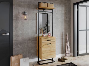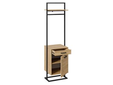 Прихожая Лофт поможет эффективно использовать пространство и уместно дополнит интерьер в одноименном стиле. Перекладина для плечиков позволит повесить вещи, сохранив их опрятный вид. Полка наверху подойдет для головных уборов, а небольшой выдвижной ящик — для полезных мелочей. Закрытая секция снизу оптимальна для хранения обуви.<br>