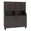 Изящный, практичный, необычайно красивый и стильный комод СО-19 Премиум с интересным дизайном будет великолепно смотреться в интерьере спальни, гостиной, прихожей или детской, при этом, комод позволяет оптимально использовать пространство помещения и сделать его еще более уютным и комфортным. Комбинированная тумба оборудована четырьмя выдвижными ящиками для хранения белья или косметики, под ними две открытые ниши для фотографий и других безделушек, а внизу за двумя распашными дверками в каждом отделении имеется по одной полке для размещения постельного белья, одежды, обуви и других вещей.
