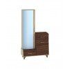 Функциональный и нестандартный Стеллаж-комод Келли Р, включащий в себя высокую тумбочку с выдвижным ящиком и распашной дверкой с одной полкой. Узкий шкаф с зеркальной распашной дверкой оснащен четырьмя полками и одним выдвижным ящиком снизу. Материал Ламинированная ДСП, высокая опора которая не затруднит уборке помещения.