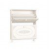 Малогабаритная Тумба для обуви Ассоль АС-45 в стиле прованс белого цвета. Обувница оснащена фигурными ножками, двумя откидными секциями под обувь, общая вместительность до 8-ми пар. Фасад мебели декорирован резными рисунками, что придает особый шик и дорогой вид мебели.