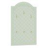 Фигурная МДФ панель с вырезанными рисунками на фасадной части оснащена тремя двойными крючками сверху и тремя одинарными крючками снизу.
