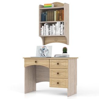 Онега лён МД-1-06 + ПК-1 Стол + Полка. Цвет - лён/ясень шимо светлый. Размер (ШхГхВ) 102х59х180 см. Очаровательный набор - удобный столик и навесная открытая полка с изящным карнизом - идеальный комплект для детской, для души и земных занятий! Тумба стола с тремя ящиками расположена справа, универсальной сборки нет. None Есть доставка.