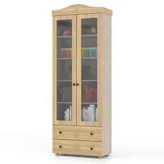 Онега лён ШК-37 Шкаф книжный со стеклянными фасадами и двумя ящиками. Цвет - лён/ясень шимо светлый. Размер (ШхГхВ) 80х38х224 см. Роскошный двустворчатый шкаф с распашными дверками со стеклом и выдвижными ящиками - верность традиции комфорта и великолепный дизайн! За дверками - четыре полки. None Есть доставка.
