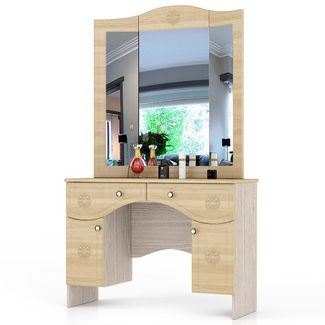 Спальня Онега лён Трельяж. Цвет - лён/ясень шимо светлый. Размер (ШхГхВ) 106х42х178 см. Изящный трельяж, состоящий из туалетного столика и трёхстворчатого зеркала, представляет собой пленительный предмет мебели для романтического интерьера Вашей спальни. None Есть доставка.