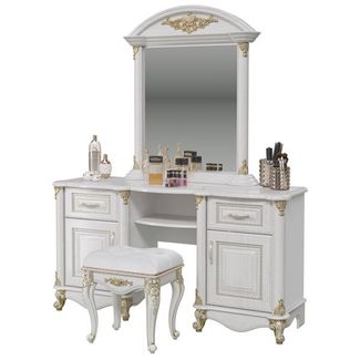 Закажите Мэри-Мебель Да Винчи белая СД-04 + СД-06 + СД-07 Стол туалетный с зеркалом и пуфом ID - 292533 у компании VAM-Market в России на портале Alloy: