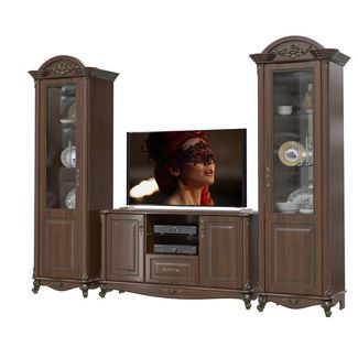 Да Винчи орех Гостиная 04. Артикулы элементов набора - ГД-01 + ГД-03 + ГД-02. Цвет - орех. Размер (ШхГхВ) 269х52х230 см. Элитная стеночка для роскошной гостиной состоит из тумбы ТВ и двух однодверных шкафов, левого и правого. Очаровательный ансамбль с классической симметрией расположения шкафов украсит интерьер, выразительно и практично. None Есть доставка.