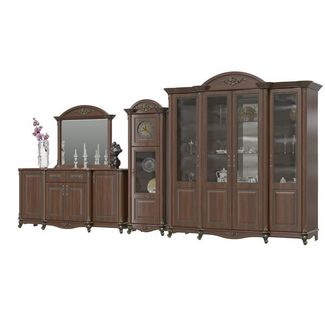 Да Винчи орех Гостиная 10. Артикулы элементов набора - ГД-06 + ГД-07 + ГД-08 + ГД-05. Цвет - орех. Великолепный гарнитур, состоящий комода 4-х дверного с зеркалом и двух шкафов, 4-х дверного и 1-дверного с часами - эстетика роскошного классического интерьера. None Есть доставка.