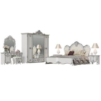 Спальный гарнитур Дольче Вита № 2. Цвет белый глянец с серебром. Спальное место 1800х2000 мм. Ортопедическое основание и матрас приобретаются отдельно. Изумительной красоты спальный гарнитур, состоящий из кровати и двух прикроватных тумб, туалетного стола с зеркалом, пуфа и шкафа 5-ти дверного, составит великолепную обстановку Вашей королевской спальни! None Есть доставка.
