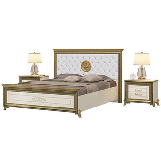 Кровать 1600 с основанием и тумбами Версаль. Цвет - слоновая кость. Размер (ШхГхВ) 315х212х127 см. Спальное место 1600х2000 мм. Ортопедическое основание в комплекте поставки, матрас приобретается отдельно. Кровать 1600 с двумя тумбами прикроватными - залог восточной неги и королевского отдыха! Уютное изголовье кровати с мягкой обивкой и элегантной каретной стяжкой, красиво обрамлено изящной резной каймой с золотой патиной. None Есть доставка.
