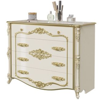 Спальня Дольче Вита СДВ-02 Комод. Цвет - слоновая кость с золотом. Размер (ШхГхВ) 120х53х94 см. Сказочный ларец с четырьмя вместительными выдвижными ящиками для Вашего приданного - сияние глянца и пышного «золотого» декора. Ручная роспись. None Есть доставка.