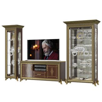 Версаль орех тайский ГВ-01+ГВ-03+ГВ-02. Размер (ШхГхВ) 347х48х201 см. Эта престижная стеночка, состоящая из двух шкафов-витрин и тумбы TV, выполненная в роскошном дворцовом стиле, внесёт в интерьер гостиной винтажные нотки шикарной старины. Универсальная сборка. None Есть доставка.