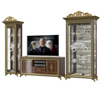 Версаль орех тайский ГВ-01К+ГВ-03+ГВ-02К. Размер (ШхГхВ) 347х48х216 см. Стеночка, включающая два шкафа-витрины с креативной золотой короной и изумительную тумбу TV, бесспорно станет бриллиантом интерьера Вашей гостиной. Универсальная сборка. Корона № 1 и корона № 2 в комплекте. None Есть доставка.