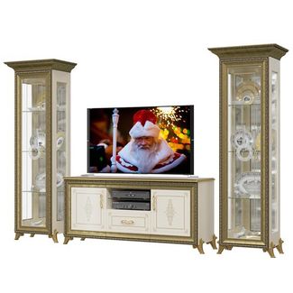 Версаль слоновая кость ГВ-01+ГВ-03+ГВ-01. Размер (ШхГхВ) 306х48х201 см. Очаровательная стеночка, состоящая из двух шкафов-витрин и тумбы TV - практичное украшение семейного уголка отдыха. Встроенные светильники шкафа, добавляя игристые отблески от зеркал, станут креативным источником освещения в гостиной. Универсальная сборка. None Есть доставка.