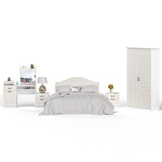 Гарнитур спальный Ливерпуль № 3. Комплектация - кровать 1600, две тумбы, угловой шкаф для одежды, стол туалетный, полка настольная и зеркало. Цвет - ясень ваниль/белый. Спальное место 1600х2000 мм. Ортопедическое основание с ножками в комплекте, матрас приобретается отдельно. Винтажные нотки «состаренного дерева», эксклюзивные ручки - тайна прелести дизайна гарнитура Ливерпуль. None Есть доставка.
