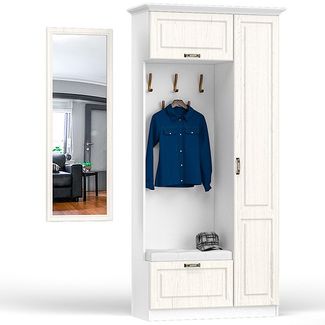 Прихожая с зеркалом и карнизом Ливерпуль. Артикул - 13.21 + 03.242 + карниз. Цвет - ясень ваниль/белый. Размер (ШхГхВ) 108х44х224 см.+ 50х2х140 см. Нарядная комбинированная прихожая с резным карнизом и большим зеркалом - образец стиля и практичного комфорта. Универсальная сборка. None Есть доставка.