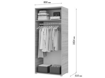 В комплект входят (ВхШхГ): <br> Кровать: 676 х 1634 х 2046 мм.<br> Шкаф: 1824 х 800 х 510 мм.<br> Комод: 659 х 800 х 446 мм.<br>