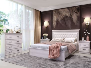 Спальный гарнитур Неаполь — это набор, подчеркивающий классический стиль в интерьере. Мягкое изголовье кровати обеспечит комфортный вечер с книгой, а пара компактных прикроватных тумбочек предоставят место для ночника, телефона или других важных вещей. Вместительный комод позволит аккуратно разместить белье и постельные принадлежности. Вырез под плинтус на мебели позволит установить ее вплотную к стене.<br>