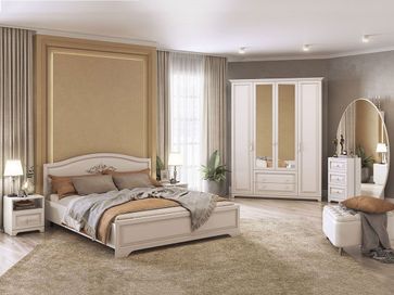 Спальный гарнитур Белла прекрасно дополнит классическую обстановку. Изящная фрезеровка и нежная патина создадут атмосферу уюта и спокойствия. Вместительный распашной шкаф с зеркальными вставками поможет содержать в порядке одежду, белье и постельные принадлежности. Изюминка набора — напольное зеркало с ящиками, которое завершит интерьер и добавит комнате функциональности.<br>