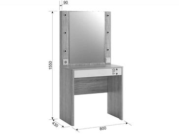 В комплект входят (ВхШхГ): <br> Кровать с подъемным механизмом: 1010 х 1500 х 2080 мм.<br> Прикроватная тумба, 2 шт.: 390 х 450 х 400 мм.<br> Туалетный столик: 1550 х 800 х 430 мм.<br> Распашной шкаф: 2167 х 1256 х 563 мм.<br>