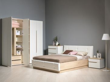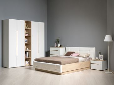В комплект входят (ВхШхГ): <br> Кровать с подъемным механизмом: 953 х 1772 х 2240 мм.<br> Прикроватная тумба: 420 х 560 х 394 мм.<br> Шкаф, 2 шт.: 2298 х 874 х 522 мм.<br> Комод: 926 х 770 х 394 мм.<br> Стеллаж: 2298 х 402 х 523 мм.<br>