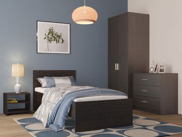 Спальный гарнитур Тиберия выполнен в минималистичном стиле. Основной элемент спальни — удобная односпальная кровать, которая обеспечит комфортный сон и отдых. Система хранения включает двухстворчатый шкаф и комод для размещения всех типов одежды. Открытая прикроватная тумба не загромождает пространство и делает его более удобным.<br>