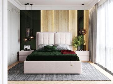 Спальный гарнитур Эстер позволит создать комфортную атмосферу в комнате для отдыха и сна. Мебель порадует приятной на ощупь обивкой, которая не требует особого ухода.<br>