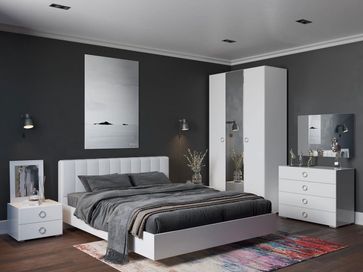 Спальный гарнитур Глория — это эстетичный дизайн и функциональность, благодаря которым легко создать привлекательный интерьер. Высокое изголовье кровати позволит очень комфортно расположиться для чтения или просмотра любимого сериала. В шкафу и комоде предусмотрено достаточно места для повседневного гардероба, постельных принадлежностей и белья. Изюминка коллекции — круглые металлические ручки на белоснежных глянцевых фасадах.<br>