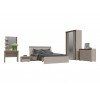 Модульный набор мебели для спальни единой серии Азалия - комплектация 4. Спальный гарнитур включает в себя все самое необходимое для функциональной, удобной и очень красивой комнаты. Мебель имеет МДФ вставки с декоративной фрезеровкой в виде волнистых линий.