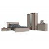 Модульный набор мебели для спальни единой серии Азалия 5. Набор мебели в едином стиле состоит из основных элементов, которые необходимы в любой комнате для полноценного отдыха, хранения одежды и белья. Фасад мебели имеет МДФ вставки с декоративной фрезеровкой в виде волнистых линий.