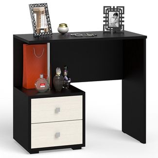 Стол косметический Камелия. Цвет - венге/дуб лоредо. Размер (ШхГхВ) 85х40х75 см. Компактный столик с двумя выдвижными ящиками, открытой нишей и удобной столешницей на хромированной стойке - место полной релаксации Вашей прелестницы! Ящики расположены только слева. None Есть доставка.
