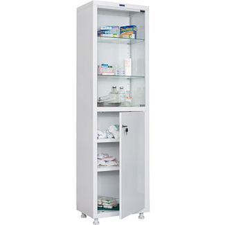 Шкаф медицинский MD 1 1650/SG - предназначен для хранения медикаментов, инструментов, больничных документов, карточек пациентов в медицинских учреждениях и организациях. Полки: 1 стеклянная, 1 металлическая. Двери: 1 металлическая и 1 стеклянная. None