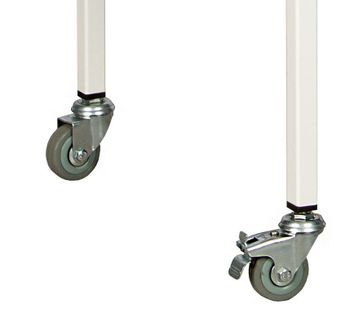 предназначены для размещения инструмента, лекарственных препаратов и приборов; каркас столика изготовлен из изготовлен из профильной трубы квадратного сечения. 20х20х1, 5 мм, покрытой эпоксидно-порошковой краской или из трубы из нержавеющей стали; полки изготовлены из нержавеющей стали 0,8 мм марки или стекла 5 мм; ящик установлен на телескопические направляющие, которые обеспечивают свободный и плавный ход ящиков даже при полной загрузке, позволяют выдвигать ящик на всю длину и использовать 100 % пространства; на ящике установлена хромированная ручка; поверхность столика устойчива к ударам, сколам, средствам дезинфекционной обработки способом протирания; столик манипуляционный MD SМ 6 имеет 4 колеса D=50 мм, импортного производства из резины серого цвета, два из которых снабжены тормозом; нагрузка на металлическую полку- не более 10 кг, на ящик- не более 15 кг, на стеклянную полку- не более 10 кг; поставляются в разобранном виде. инструкция по сборке в комплекте