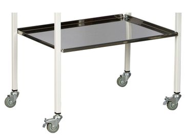 предназначены для размещения инструмента, лекарственных препаратов и приборов; каркас столика изготовлен из изготовлен из профильной трубы квадратного сечения. 20х20х1, 5 мм, покрытой эпоксидно-порошковой краской или из трубы из нержавеющей стали; полки изготовлены из нержавеющей стали 0,8 мм марки или стекла 5 мм; ящик установлен на телескопические направляющие, которые обеспечивают свободный и плавный ход ящиков даже при полной загрузке, позволяют выдвигать ящик на всю длину и использовать 100 % пространства; на ящике установлена хромированная ручка; поверхность столика устойчива к ударам, сколам, средствам дезинфекционной обработки способом протирания; столик манипуляционный MD SP 2N имеет 4 колеса D=50 мм, импортного производства из резины серого цвета, два из которых снабжены тормозом; нагрузка на металлическую полку- не более 10 кг, на ящик- не более 15 кг, на стеклянную полку- не более 10 кг; поставляются в разобранном виде. инструкция по сборке в комплекте