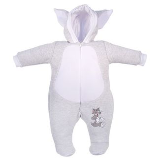 Комбинезон с капюшоном в стиле "Том" выполнен из трёхниточного футера с начёсом в бело - сером цвете, на молнии, украшен печатью "Том". Подкладка только по капюшону. Одежда второго слоя. Удобный крой.Размеры 56,62,68 - с закрытыми ножками; 74,80 - с открытыми ножками. None Можно купить без предварительного заказа.