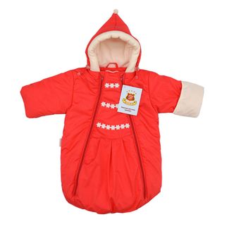 Конверт с рукавами.Ткань водоотталкивающая, плащевая. Утеплитель - синтепон 1 слой 150 г/м2. Подкладка – мягкий хлопок (фланель).Манжеты на рукавах отворачиваются, на резинке для плотного прилегания.Низ изделия – сборка на резинке. Внешний вид может немного отличаться от указанного на фото. None