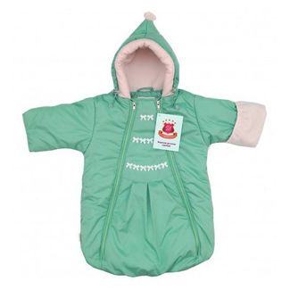 Конверт с рукавами.Ткань водоотталкивающая, плащевая. Утеплитель - синтепон 1 слой 150 г/м2. Подкладка – мягкий хлопок (фланель).Манжеты на рукавах отворачиваются, на резинке для плотного прилегания.Низ изделия – сборка на резинке. Внешний вид может немного отличаться от указанного на фото. None