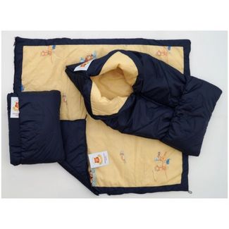 Верх конверта – водоотталкивающая, плащевая. Утеплитель – 2 слоя синтепона 150 г/м2. Внутренняя сторона – хлопок.Фурнитура – молнии и пуговицы. Конверт-одеяло украшен декоративной строчкой.При помощи молний одеяло трансформируется в конверт и наоборот.Размер конверта - 45х85.Размер одеяла – 95х85.Низ изделия – сборка на резинке.Внешний вид может немного отличаться от указанного на фото. None