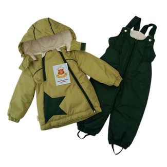 Куртка и полукомбинезон, ткань водоотталкивающая, плащевая. Подкладка на куртке: полочка, спинка - мягкий флис, рукава - хлопок. Куртка имеет 2 молнии: короткую - не разъемную и длинную – разъемную. На полочке карман декорирован звездой, рукава на резинке. По низу изделия проложен шнур для утяжки, Подкладка у полукомбинезона (штанины) – полиэстер, грудка - мягкий флис.Низ штанины на резинке, имеет доп. резинку для обуви Утеплитель – 1 слой синтепона 150 г/м2. Капюшон на кнопках, при необходимости отстёгивается. Расцветка и элементы отделки могут незначительно отличаться от фото. None