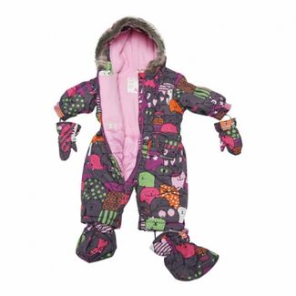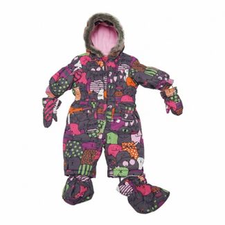 Комбинезон для ребёнка с отстёгивающимися пинетками и варежками. Принт — яркие разноцветные котики. Дизайн торговой марки Deux par Deux. Спереди два оригинальных кармашка в виде кошачьей головы с ушками. Диагональная ярко-фиолетовая молния подчёркивает особенность этого комбинезона. На шарфике и манишке вышивка в виде весёлых котиков, что придаёт особый шарм и индивидуальность данному комплекту. Вязаную полосатую шапочку на завязках, с забавными ушками и усиками, можно подобрать в комплект, игривая, тёплая и стильная. Комплектация.Комбинезон, шарф (флис), манишка (флис), варежки, пинетки. None Можно купить без предварительного заказа.