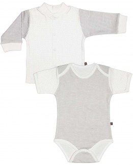 - Kiddy bird боди с коротким рукавом и кофточка серые точки полоски в каталоге Другая одежда для новорожденных в России;