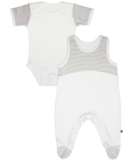 Закажите Kiddy bird боди с коротким рукавом и полукомбинезон серые точки полоски у компании BABADU в России на портале Alloy: