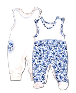 Ползунки Kiddy Bird Гжель белые - симпатичный комплект из двух высоких ползунков с удобными застежками-кнопками. Отделка горловины и манжет - мягкая эластичная резинка. Одежда изготовлена из натуральной хлопковой ткани, прочной и мягкой на ощупь. Отличное решение для нежной кожи малыша! Минимальная сумма заказа 1500 руб. Возможен самовывоз. Есть доставка.
