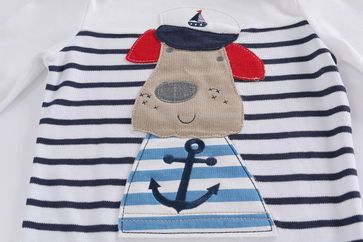 Оригинальный костюмчик порадует вашего мальчика и сделает его похожим на морячка. Эффектная аппликация впереди, красивое сочетание темно-синего и белого цветов напомнят о море и морских приключениях. Комплект радует отсутствием застежек, что облегчит процесс одевания и позволит крохе делать это самостоятельно. Минимальная сумма заказа 1500 руб. Возможен самовывоз. Есть доставка.